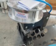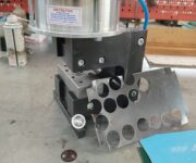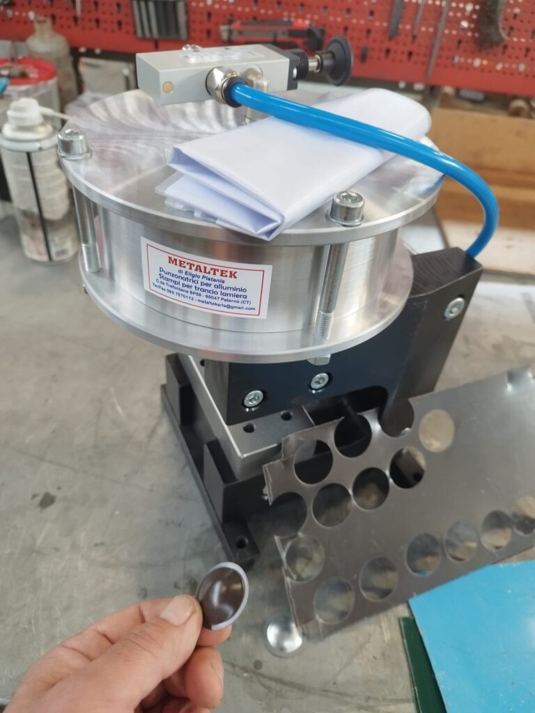 Punzonatrice pneumatica per la realizzazione dei tappi coprichiodo per grondaie e fasce di lamierati per rivestimenti esterni.