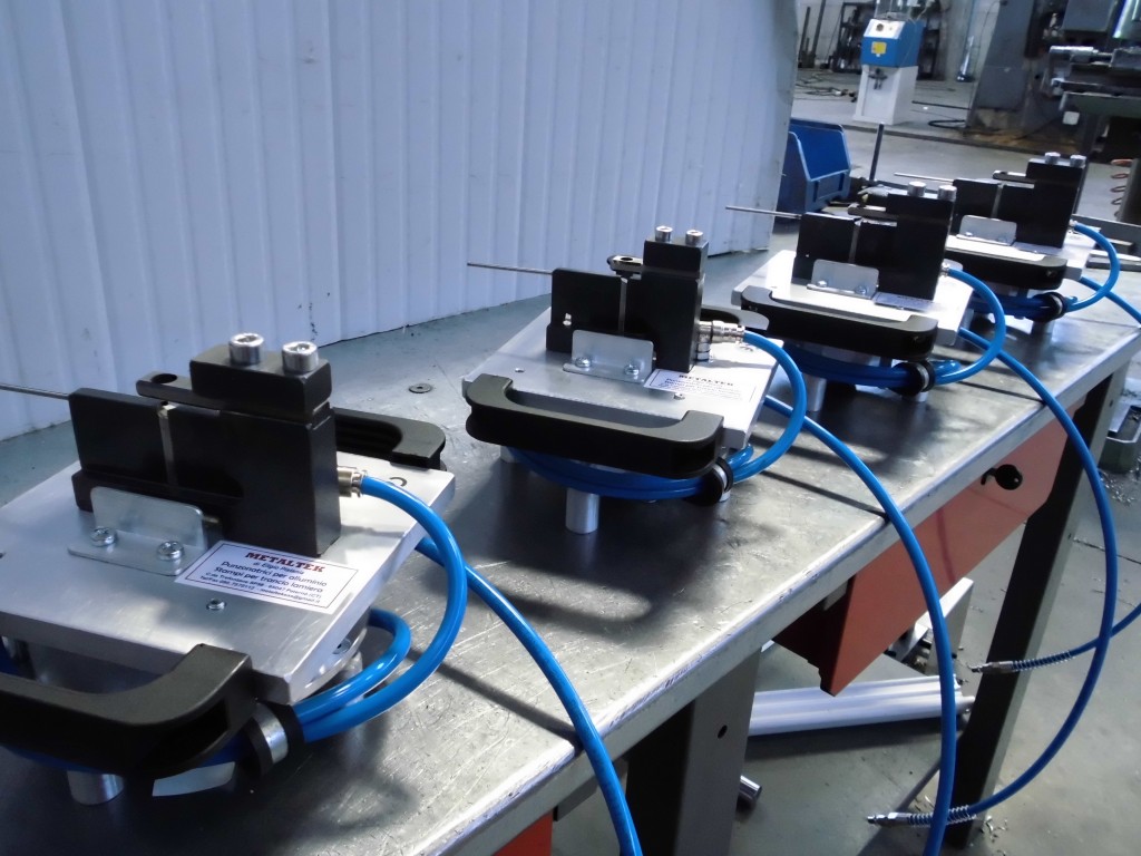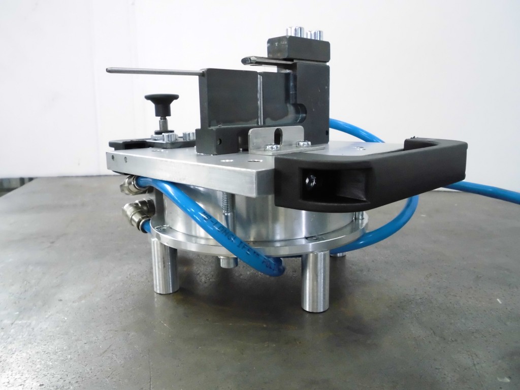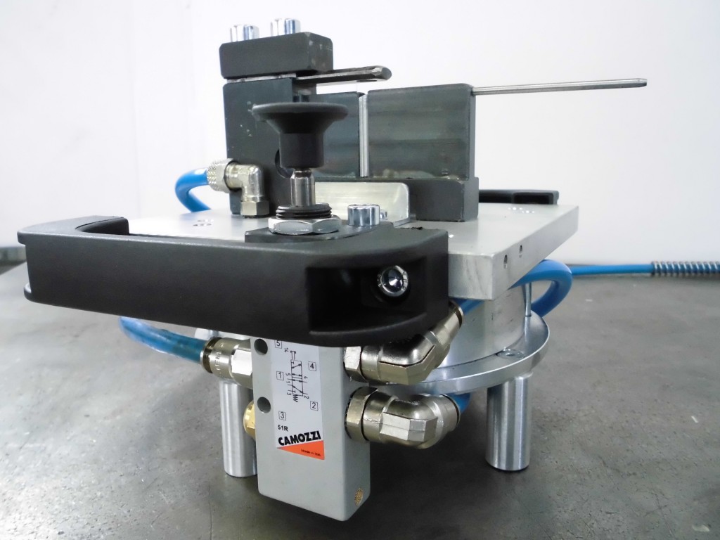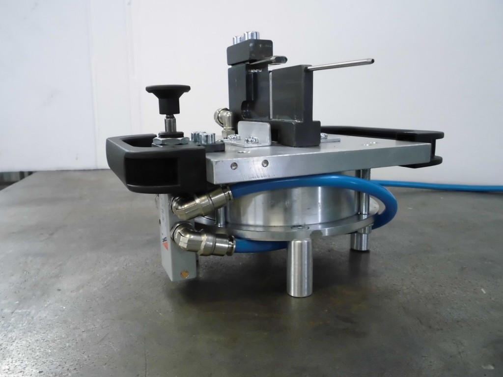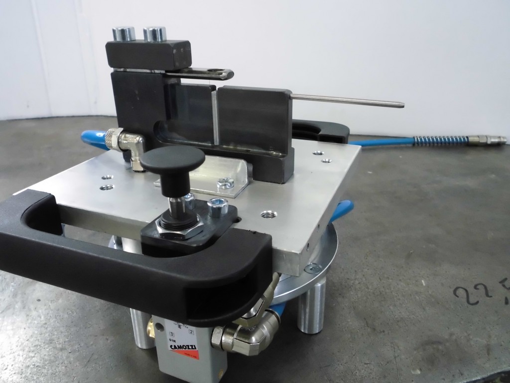 Descrizione: Punzonatrice pneumatica manuale realizzata per gli impianti di verniciatura, per la foratura di tutti i profili che devono essere inseriti nell’impianto di verniciatura a polvere.