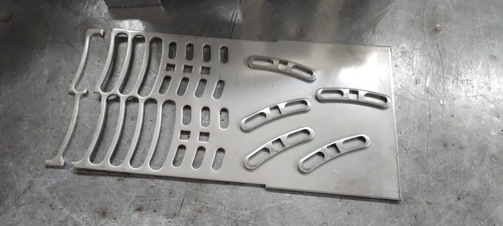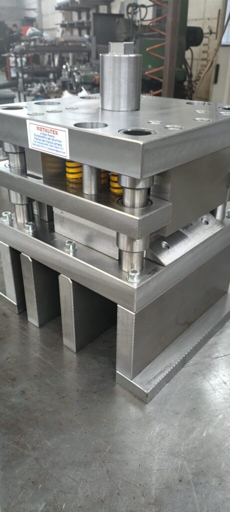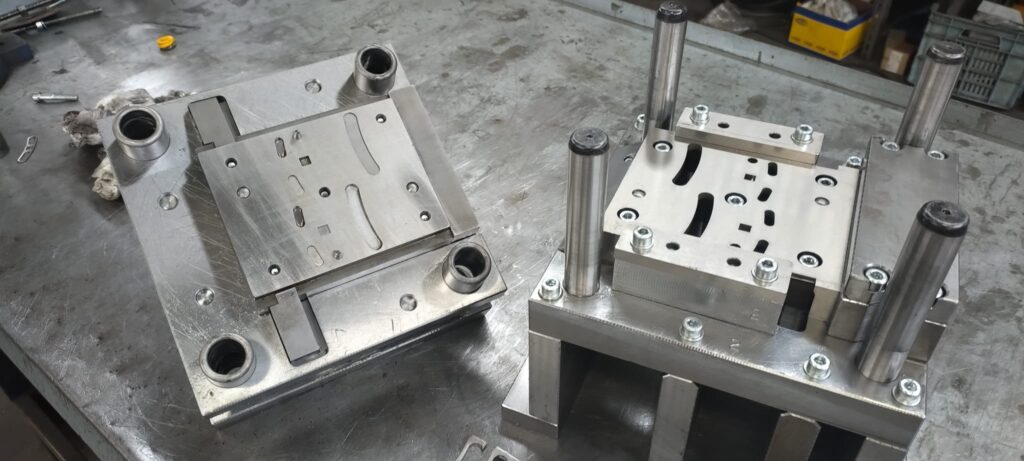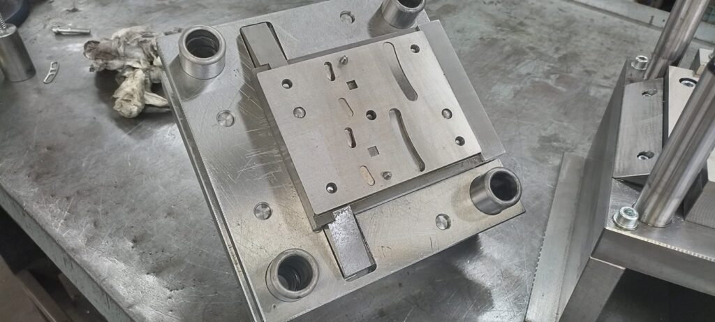 Descrizione: Stampi tranciatura lamiera Stampo progressivo per la realizzazione di accessori in acciaio inox spessore 30/10